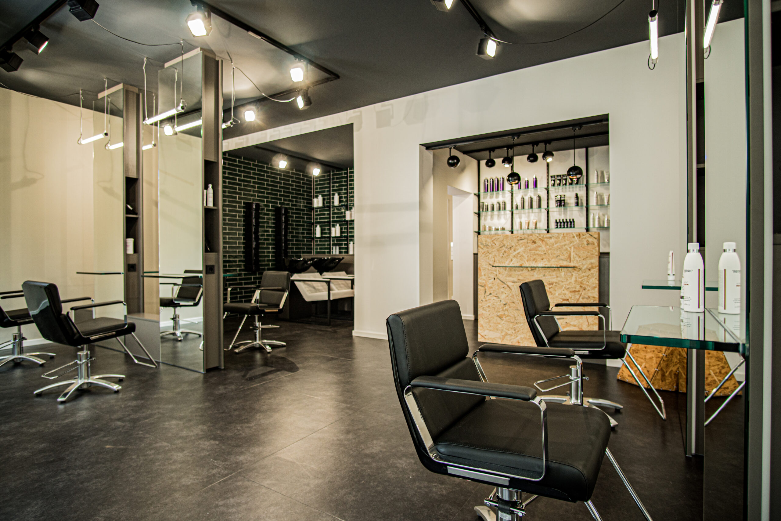 Ein Getränkemarkt der zum Friseursalon wird. Hier Stand Individualität auf dem Programm – Alle Möbel wurden extra angefertigt und dem Raumgefühl angepasst. Alle Arbeitsabläufe hinterfragt und miteinbezogen. Es sollte ein moderner Look sein, der sich trotzdem in der ländlichen Umgebung gut einfügt. Der einst große Raum wurde neu zoniert um Waschplätze, aber auch ein Büro sowie ein Kosmetikbereich unter zu bringen.